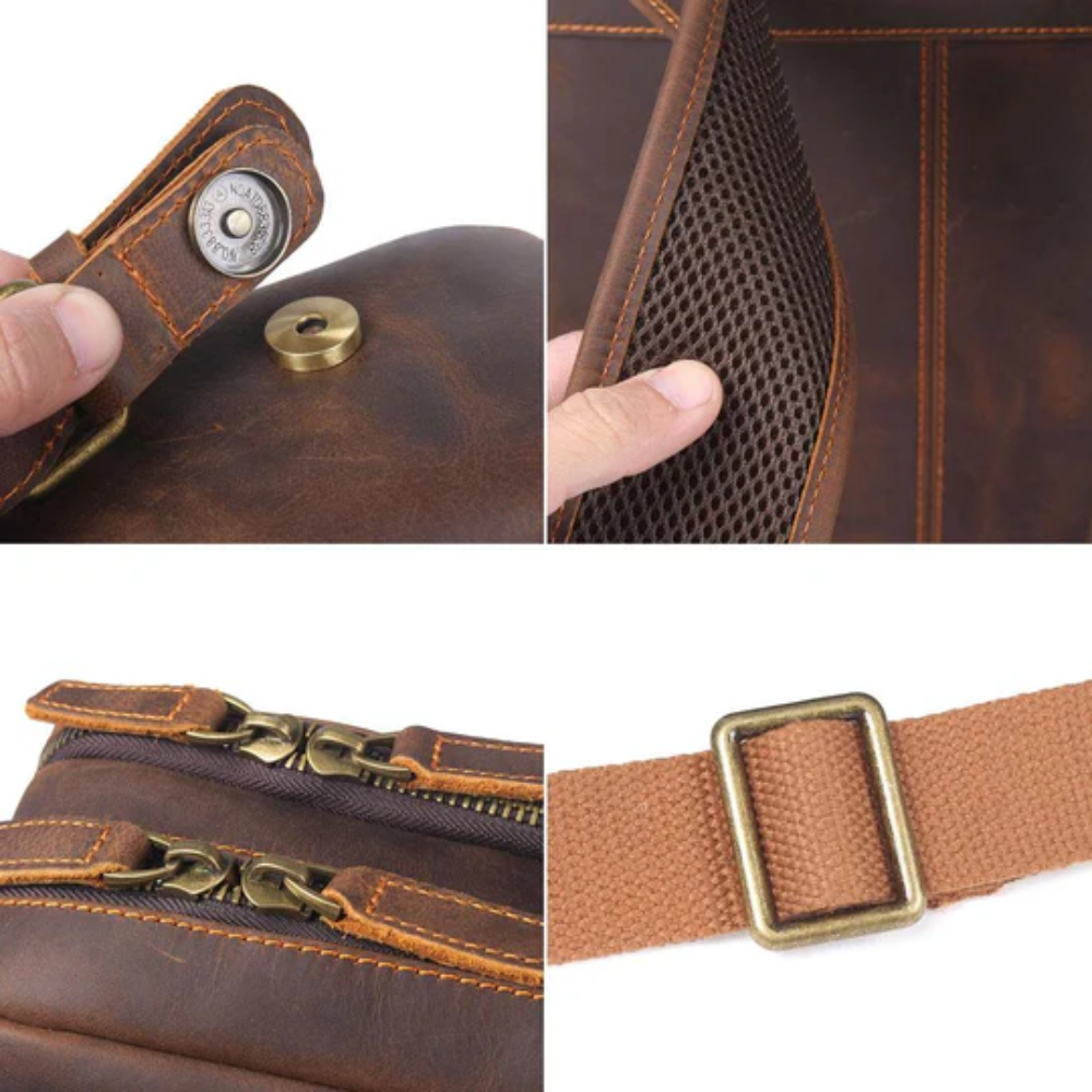 A leather backpack should not only look good – it should also feel good. Padded, adjustable shoulder straps reinforced with shock-absorbing foam provide all-day comfort, even when fully loaded. Rivet-reinforced stress points ensure durability, making this backpack a lifetime investment. With each journey, it becomes more unique – a backpack with a story.
